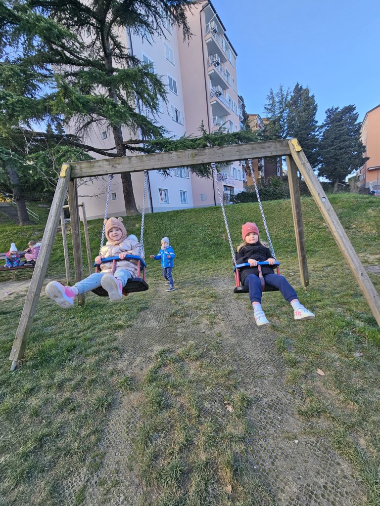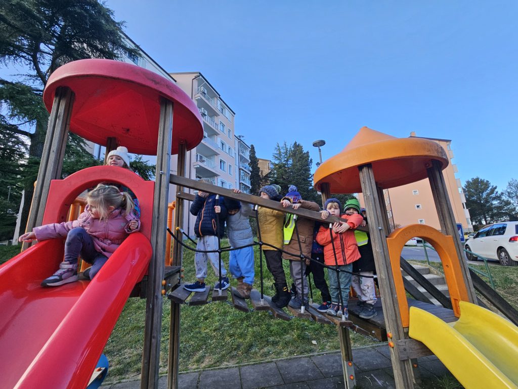 Čas smo namenili tudi prosti igri na igrišču Kraljeve ulice, kjer so otroci skozi gibanje in medsebojno sodelovanje razvijali socialne spretnosti.