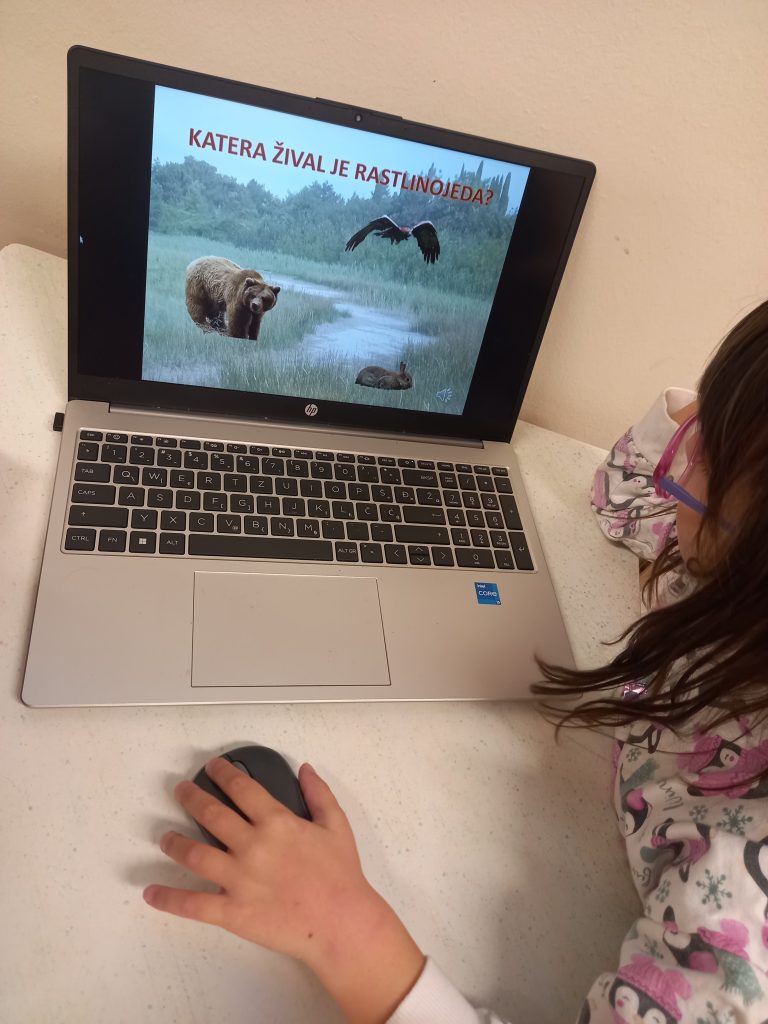 V okviru tematskega sklopa “Kaj delajo živali pozimi?” so otroci skozi raznolike in igrive dejavnosti raziskovali življenje živali v zimskem času. Ob fotografijah, pogovorih, digitalnem kvizu in razvrščanju slik so spoznavali prehranjevanje, bivališča ter razlike med živalmi, ki zimo prespijo, dremljejo, otrpnejo ali so aktivne. Posebno pozornost smo namenili tudi pticam selivkam in stalnicam.