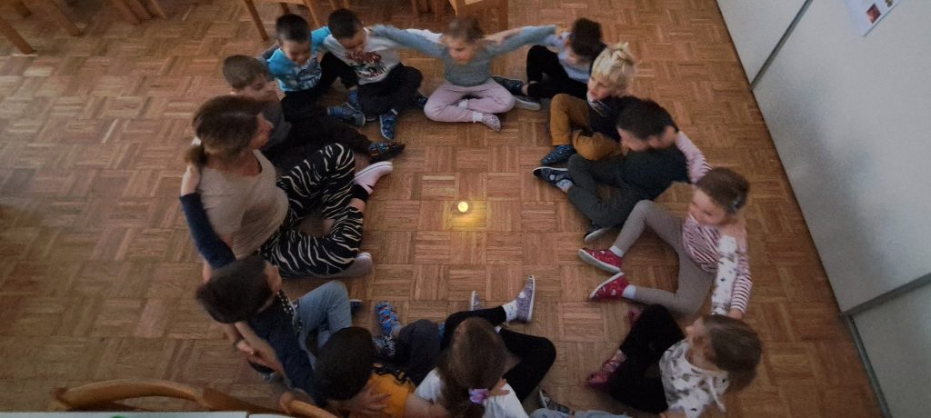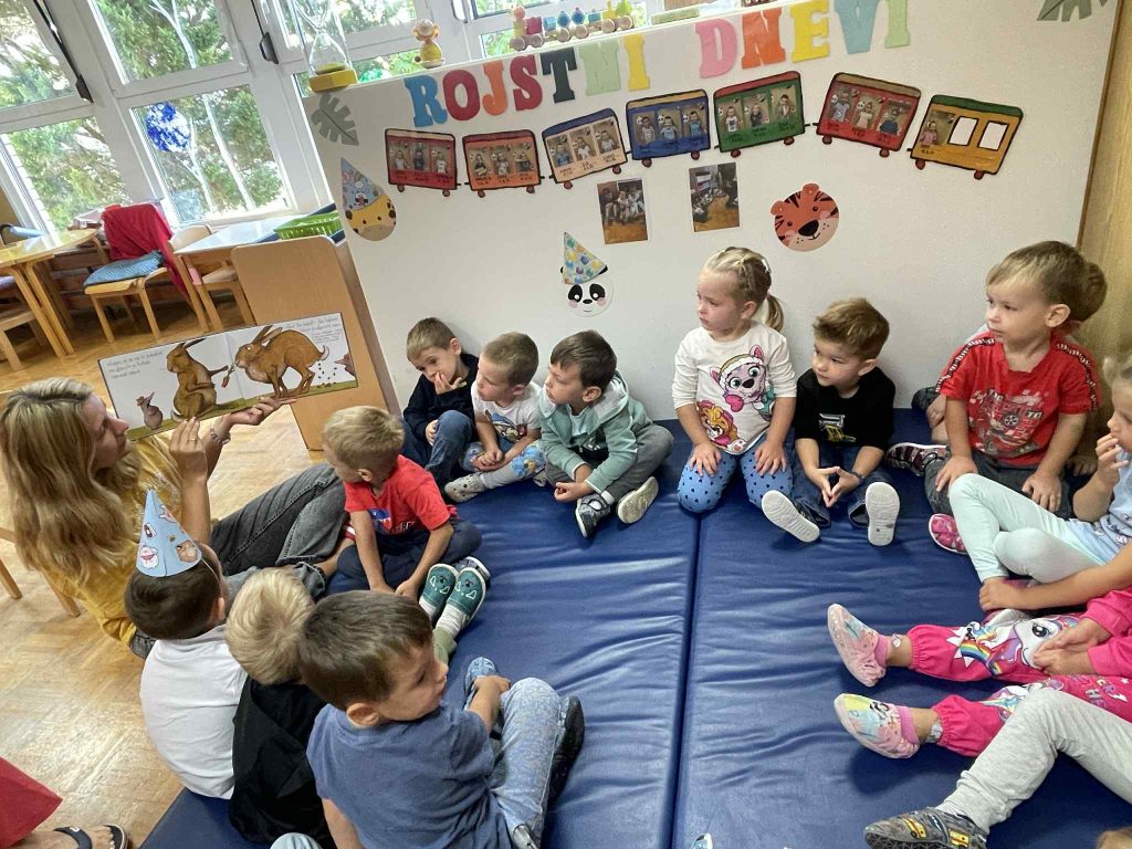 Mlajši otroci pa so dan obeležili nekoliko drugače – praznovali so prijateljev rojstni dan. Slavljencu je bilo zelo pomembno, da si vsi skupaj vzamemo čas za druženje, zato je izbral dejavnost, kjer smo se usedli na mehke blazine in prebrali knjigo, ki povezuje prijatelje ter jih združuje s toplino, prijaznostjo in medsebojno bližino.