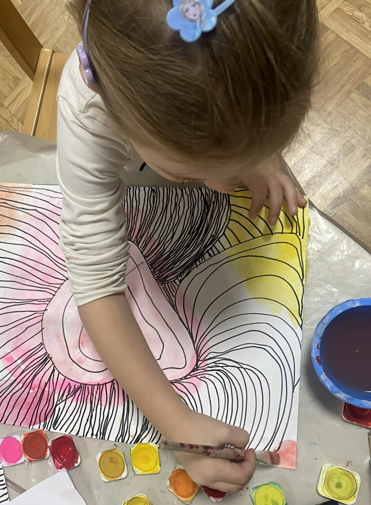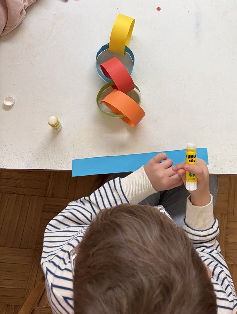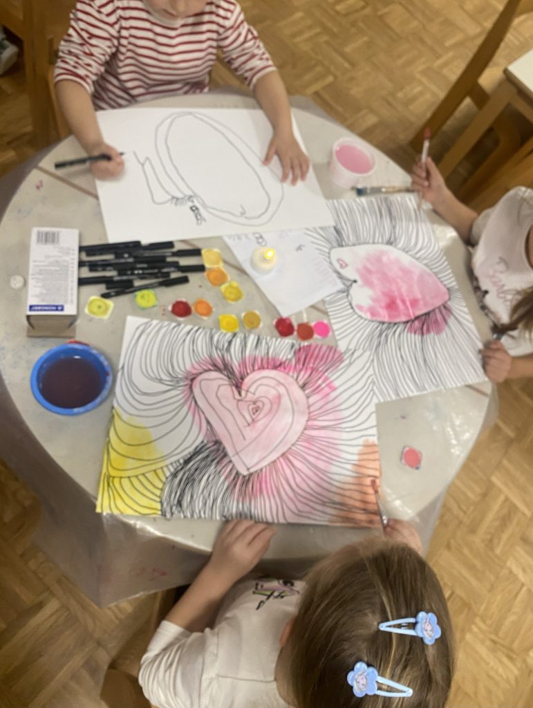 V zadnjih tednih smo še posebej veliko govorili o prijaznosti, svetlobi v nas in o lepih mislih, ki jih delimo drug z drugim. Spoznali smo, da lahko že z majhnimi dejanji – nasmehom, lepo besedo, pomočjo ali povabilom k igri – drugemu polepšamo dan. Ob tem smo: brali pravljice o prijateljstvu, ljubezni in sprejemanju, poslušali in peli pesmi, ki govorijo o sreči, dobroti in poštenosti, plesali »Ples za srečo«, kjer smo s plesom, gibanjem in veseljem širili dobro voljo med seboj. Ugotavljali smo, da je vsaka barva lepa na svoj način. Ko pa se barve povežejo, nastane še nekaj lepšega – mavrica. Tako smo tudi ljudje kot barve – vsak je drugačen, edinstven in pomemben.
