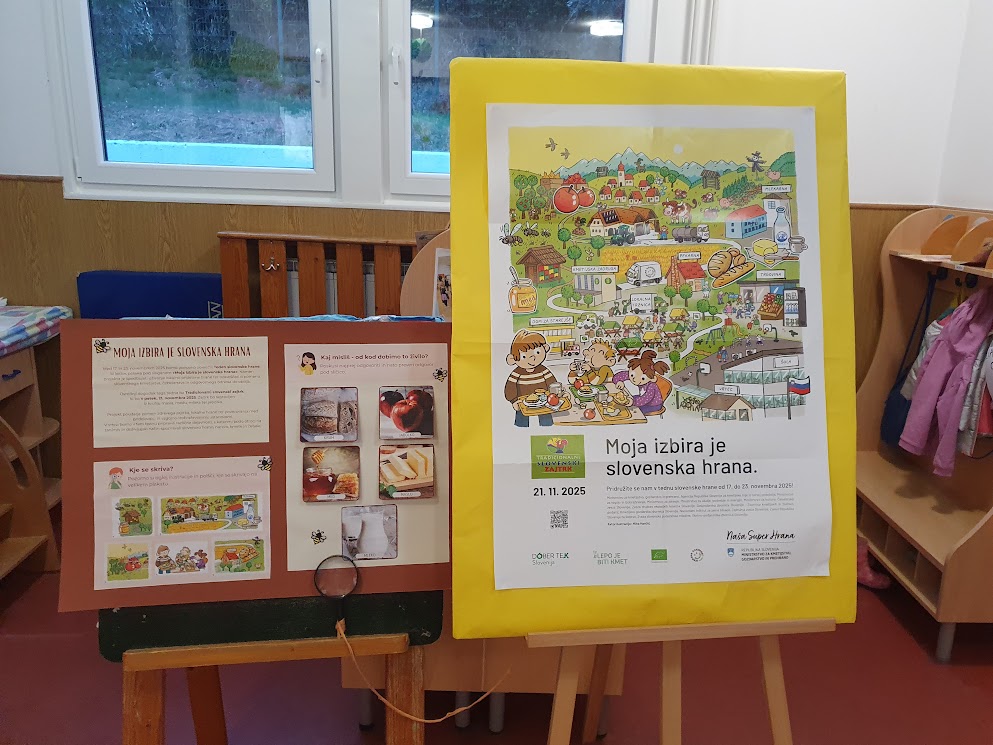 V tednu slovenske prehrane smo spoznavali poklic čebelarja in njegove pripomočke, ki jih uporablja pri delu. Izdelovali smo pogrinjke in spoznavali, kje dobimo sestavine za tradicionalni slovenski zajtrk.