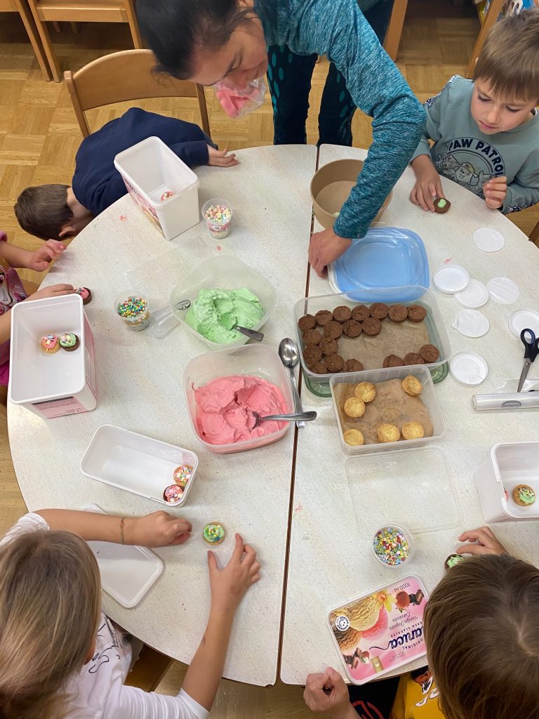 V mesecu novembru smo z najstarejšimi otroki spoznavali svoje družine in poklice. Starši so se z veseljem pridružili in v naši skupini predstavili svoje poklice. Tako smo spoznali poklic slaščičarja in cvetličarja.