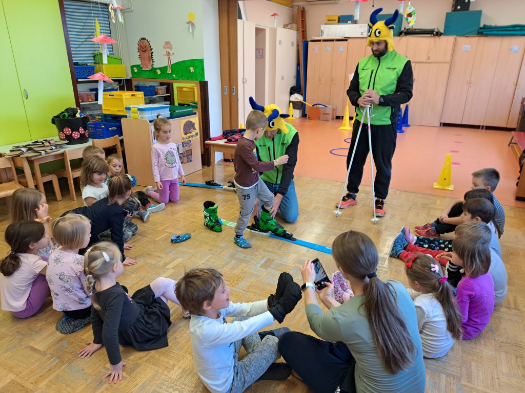 V okviru gibalnega programa GUMB smo v vrtcu gostili Smučarski klub Koper. Otroci so spoznavali smučarsko opremo in različne pripomočke ter se preizkusili na gibalnem poligonu, kjer so z improviziranimi smučkami “zdrsnili” v svet smučanja. Izkušnja je otrokom prinesla veliko veselja, gibanja in nepozabnih novih doživetij.
