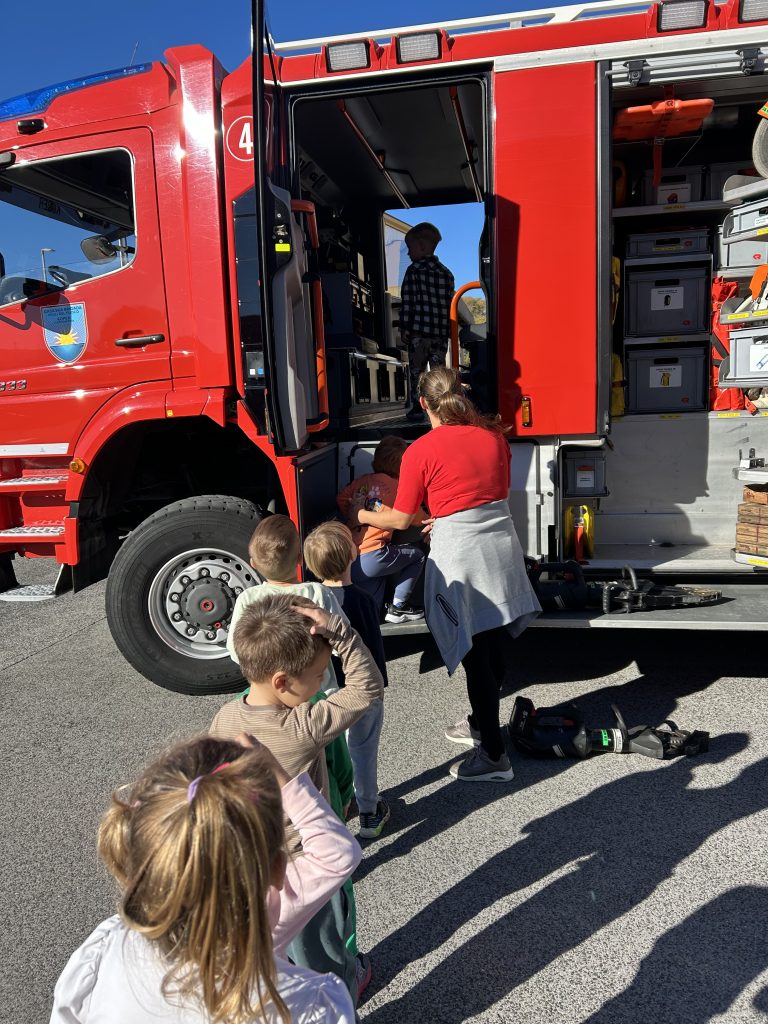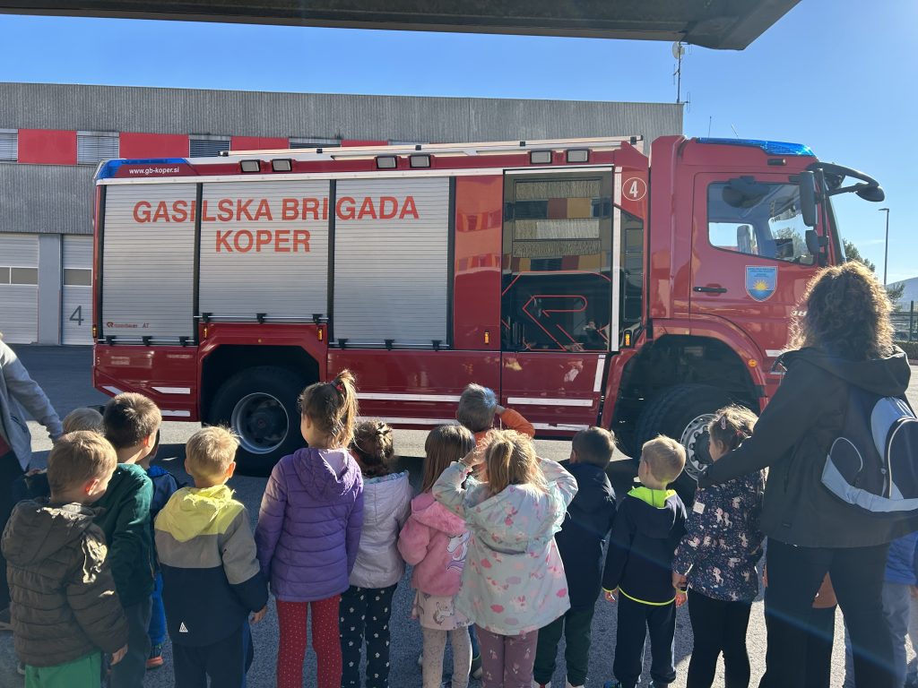Obiskali smo tudi Gasilsko brigado Koper, kjer smo si ogledali delo poklicnih gasilcev, njihova vozila ter opremo. Otroci so navdušeno spremljali predstavitev in spoznavali, kako pomembno in odgovorno je delo gasilcev.