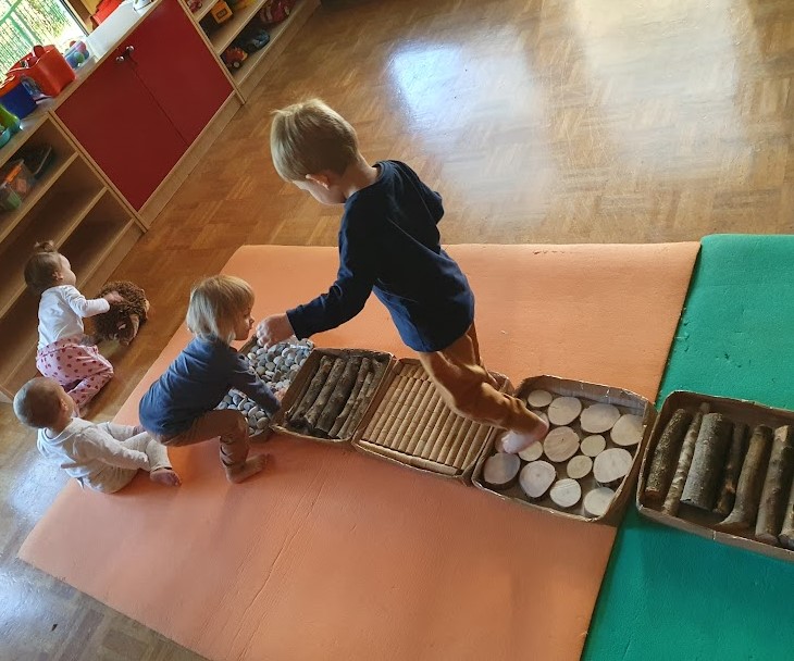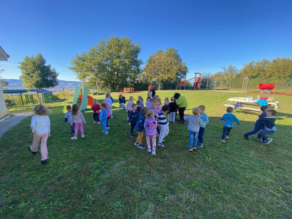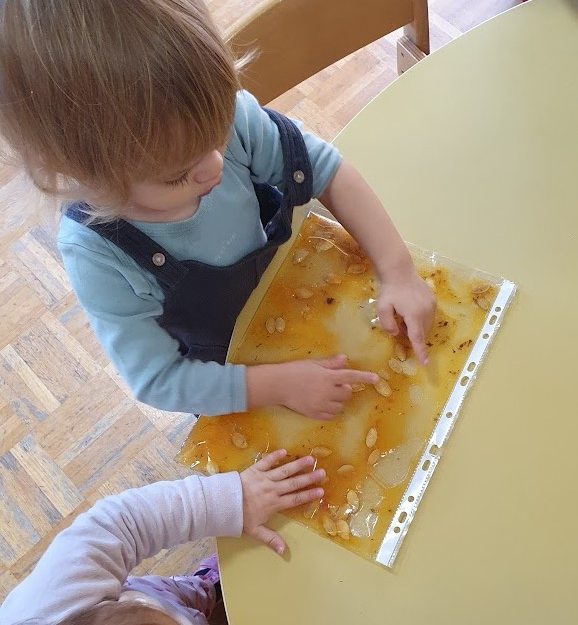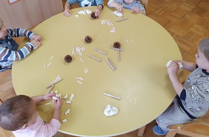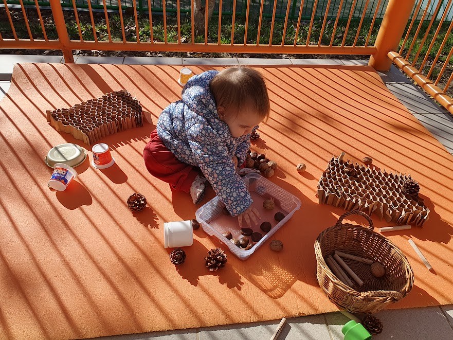 Skozi igro in različnimi senzoričnimi dejavnostmi so otroci spoznavali teksture, barve in oblike jeseni. Igra z naravnimi materiali jim je omogočila bogato čutno izkušnjo, raziskovanje okolja ter razvijanje ustvarjalnosti.
