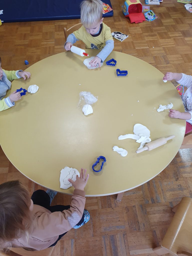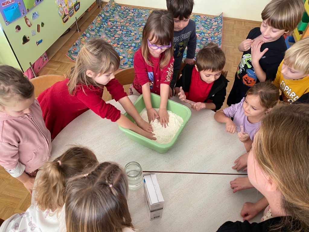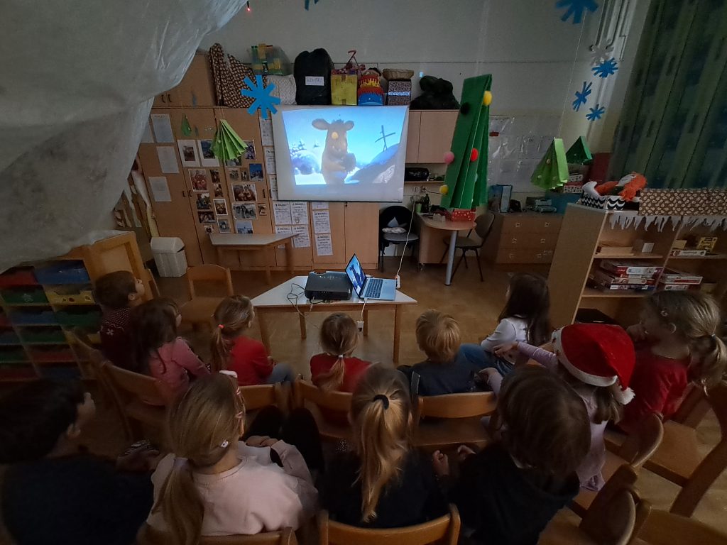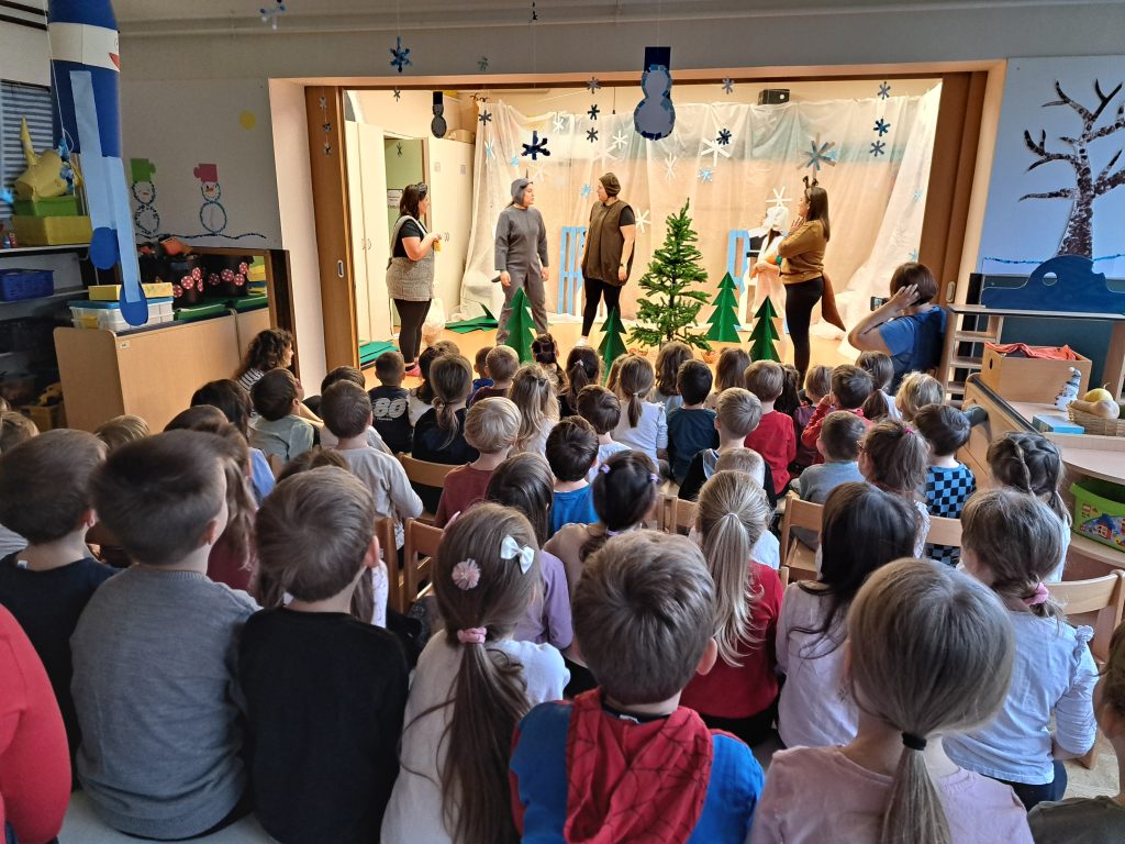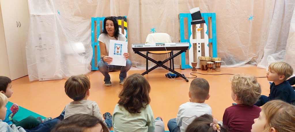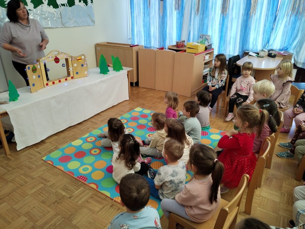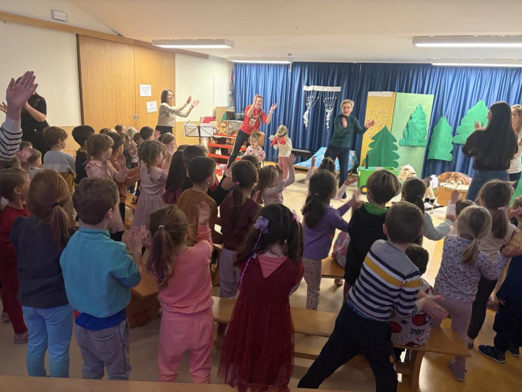 Otroci so skozi pogovore o praznikih, običajih in zimski tematiki »Zima je rima« spoznavali Miklavža, Božička in Dedka Mraza, se učili pesmi ter razvijali jezikovne, glasbene in gibalne spretnosti. Ustvarjalne in gibalne dejavnosti so spodbujale domišljijo, sodelovanje in veselje do gibanja.