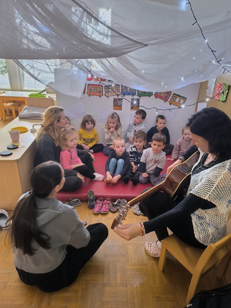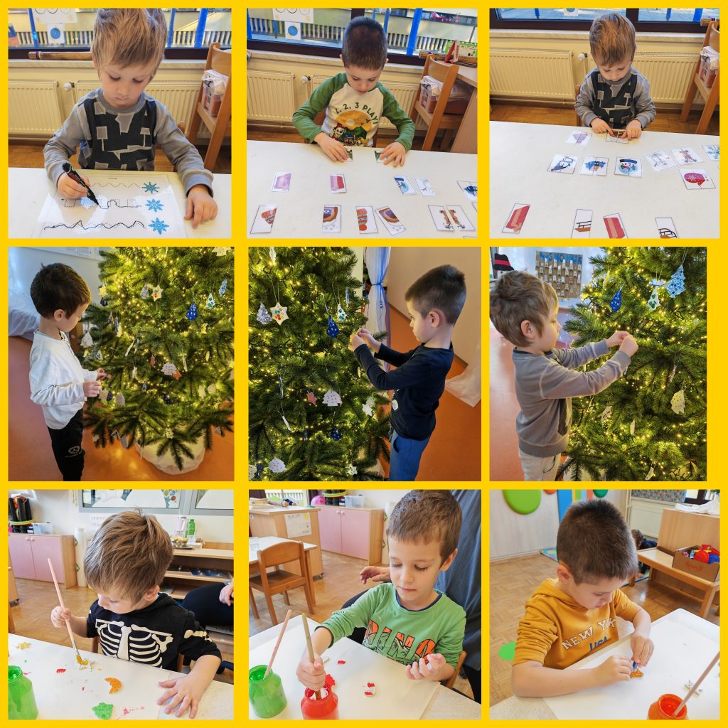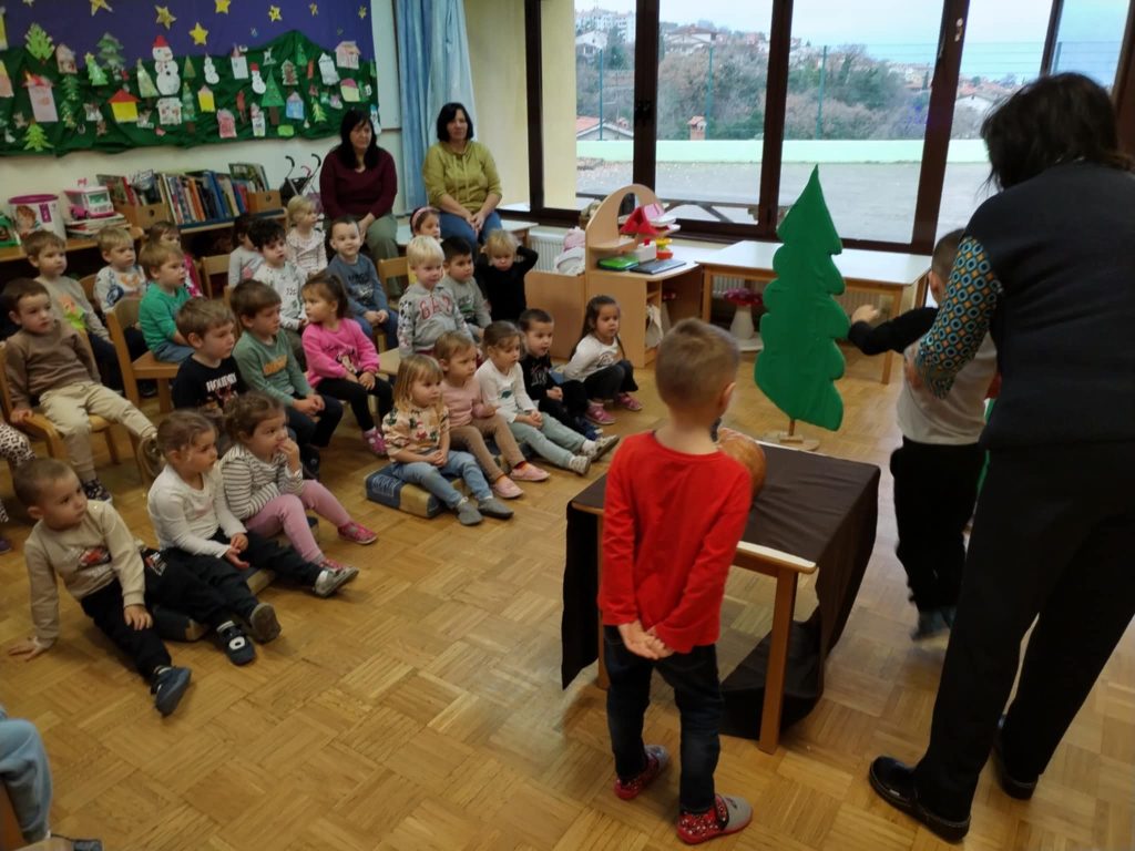 Odpravili smo se tudi na sprehod do Kopra, kjer smo uživali v praznično okrašenem mestu in prijetnem druženju. Otroci so z velikim navdušenjem spremljali predstavo, ki so jo pripravile strokovne delavke z naslovom Didl didl daja Dedek Mraz prihaja. Praznične dni smo obogatili s prazničnim koncertom, ki je ustvaril posebno vzdušje, ter z branjem pravljic pod jelko, ob katerih so otroci z veseljem prisluhnili čarobnim zgodbam. Posebno doživetje je bila tudi glasbena delavnica s strokovno delavko Jano Olivieri, kjer so otroci skozi glasbo izražali svojo ustvarjalnost. Za dobro počutje in sprostitev smo poskrbeli z jogo za otroke, pod vodstvom vzgojiteljice Maje Peric, ki je otrokom ponudila mirne trenutke in gibanje na igriv način. Mesec pa smo popestrili še z obiskom dedka Mraza, zamenjavo igralnic, odpiranjem novoletnega koledarja, izdelovanjem voščilnic, obiska vrtčevskega kina in ogledom glasbene predstave »Luna gre na pot«. December je bil tako preplet prazničnih trenutkov, novih doživetij in skupnega ustvarjanja, ki nam bodo še dolgo ostali v lepem spominu.