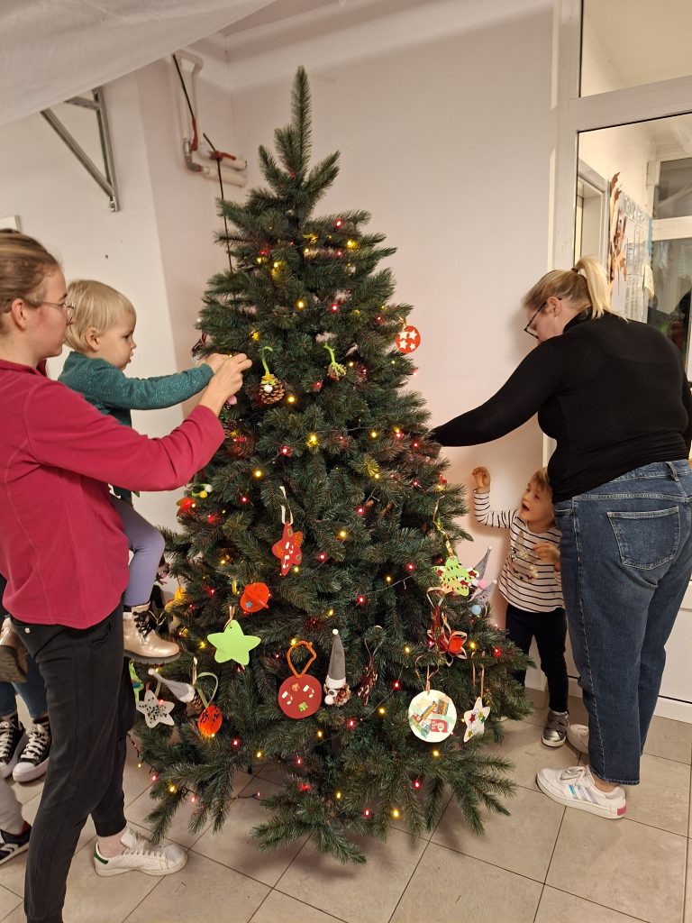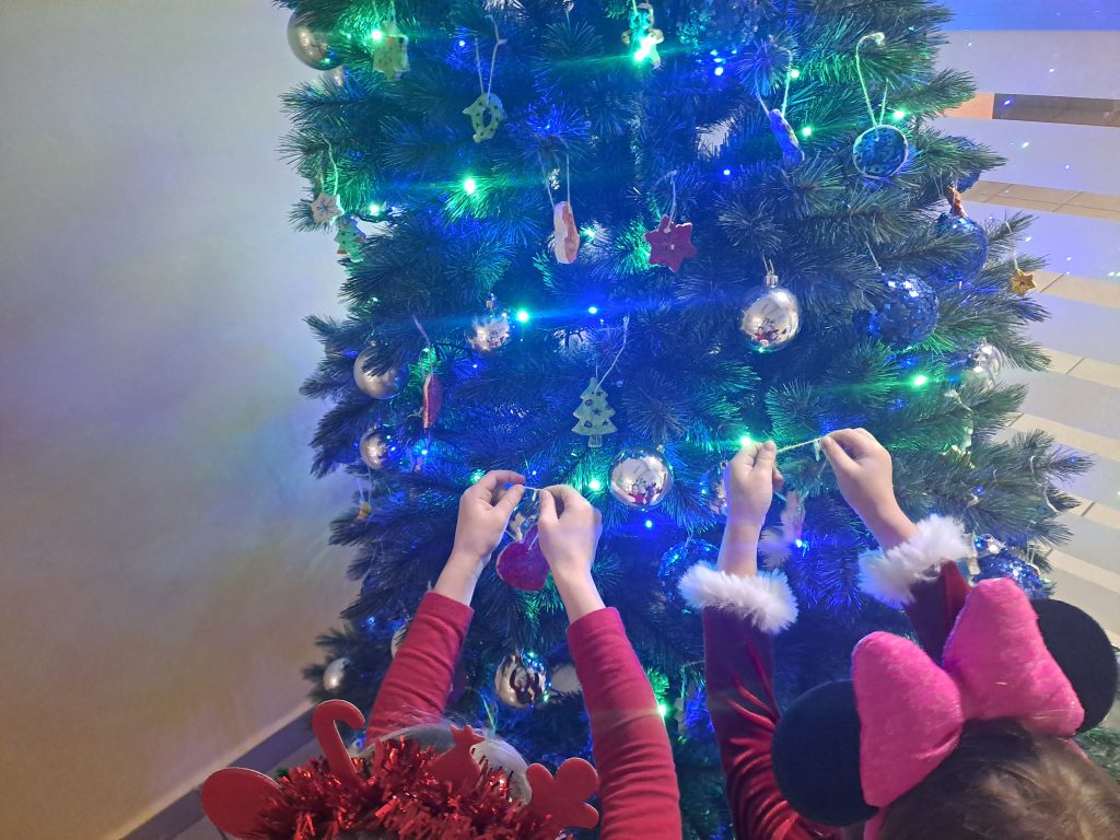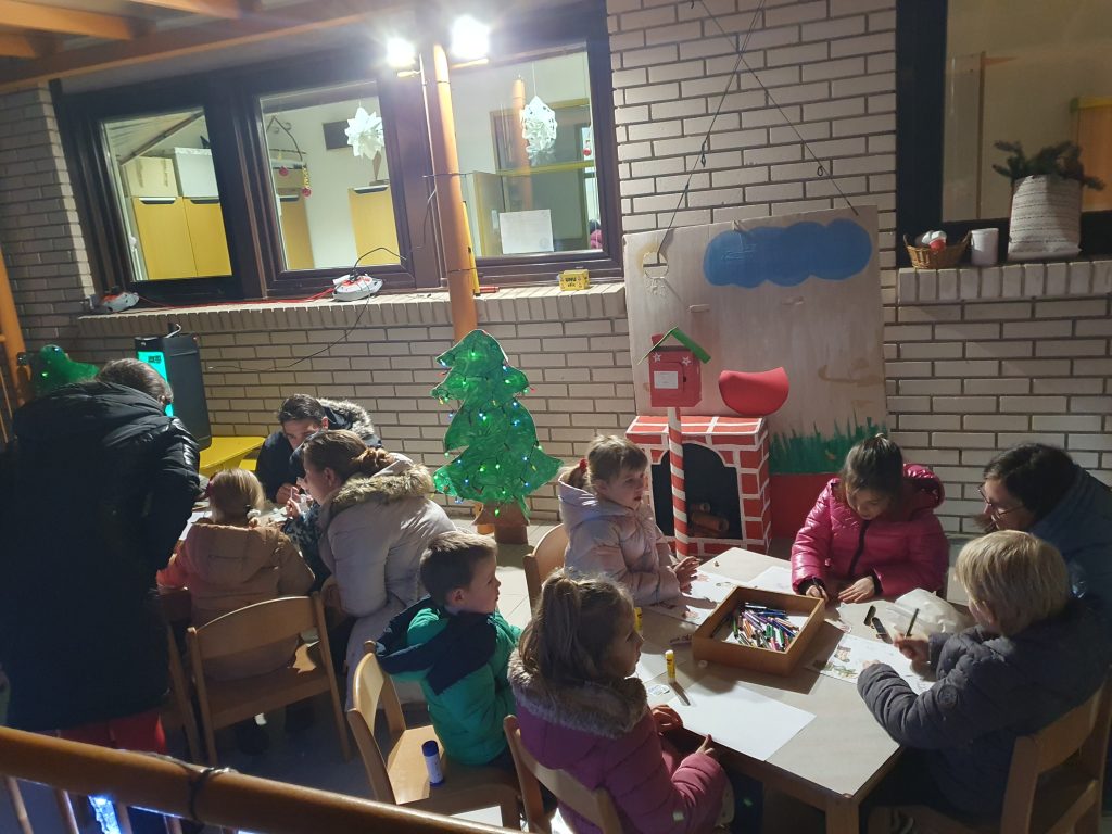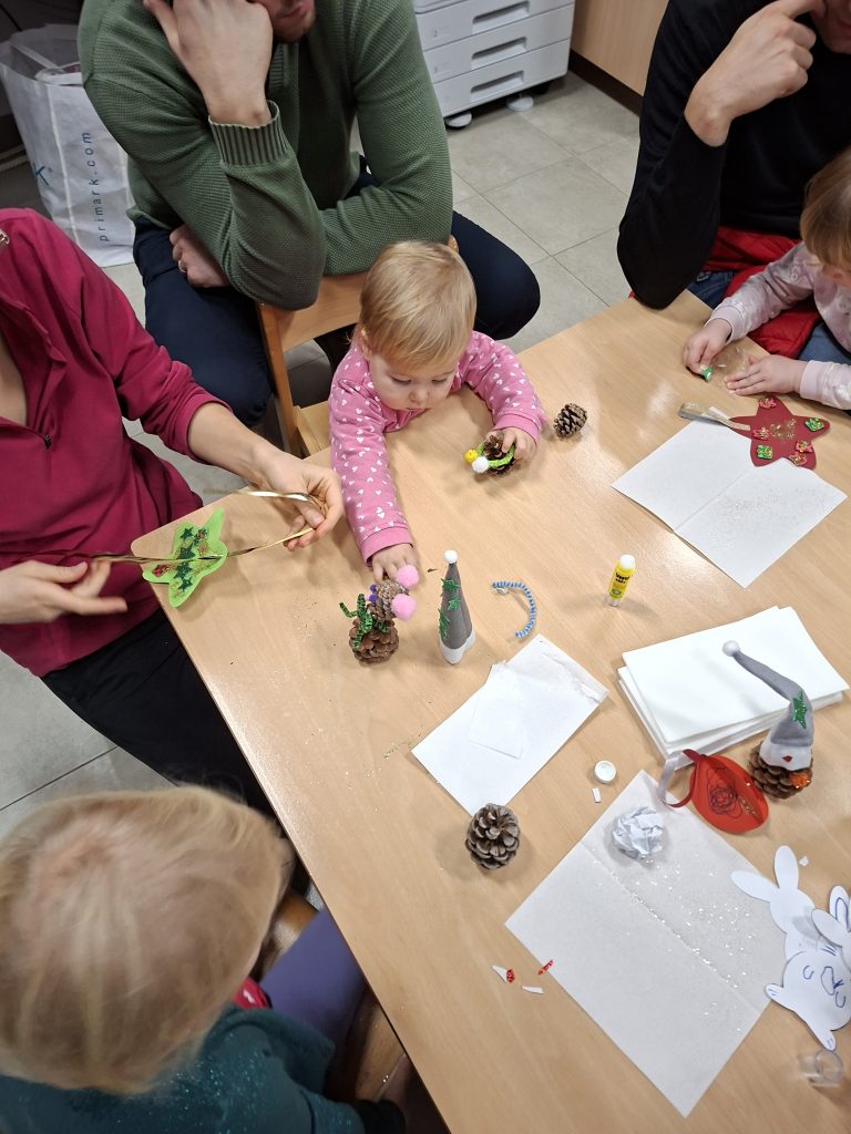 Decembrsko ustvarjanje se je začelo z novoletno delavnico, na kateri so se starši in otroci v popoldanskem času znova zbrali v vrtcu. Skupaj so si ogledali predstavo z naslovom Novoletna smrečica, ki je pričarala pravo praznično vzdušje. Po predstavi so se prepustili umetniškemu ustvarjanju. Na voljo je bilo veliko raznolikega materiala, iz katerega so nastajali čudoviti okraski, s katerimi so okrasili praznično drevesce v naši enoti. Dogodek so še posebej polepšali starejši otroci, ki so ob soju lučk zapeli znane otroške in praznične pesmi ter s petjem ogreli srca vseh prisotnih.
