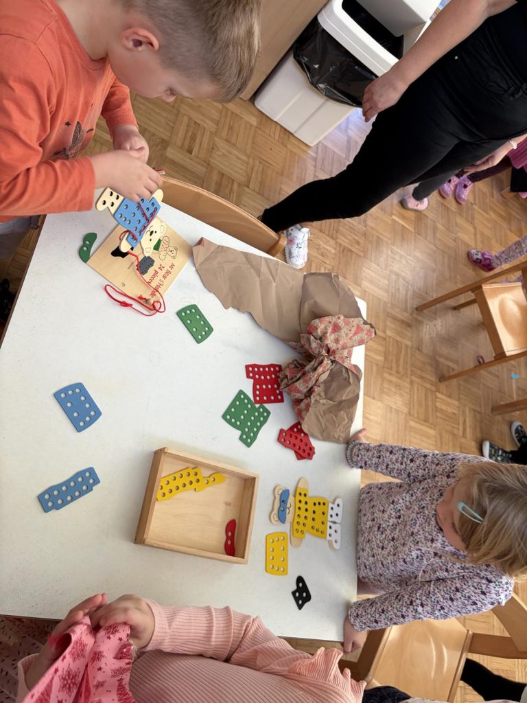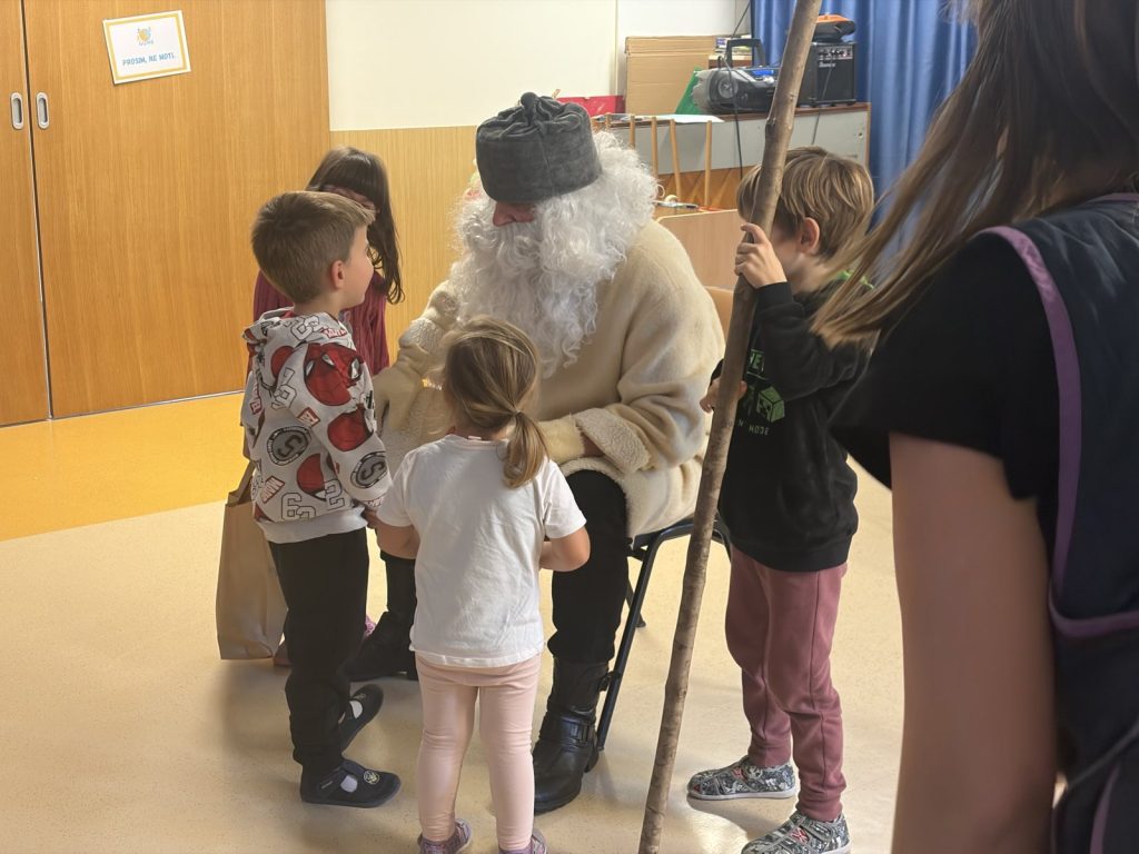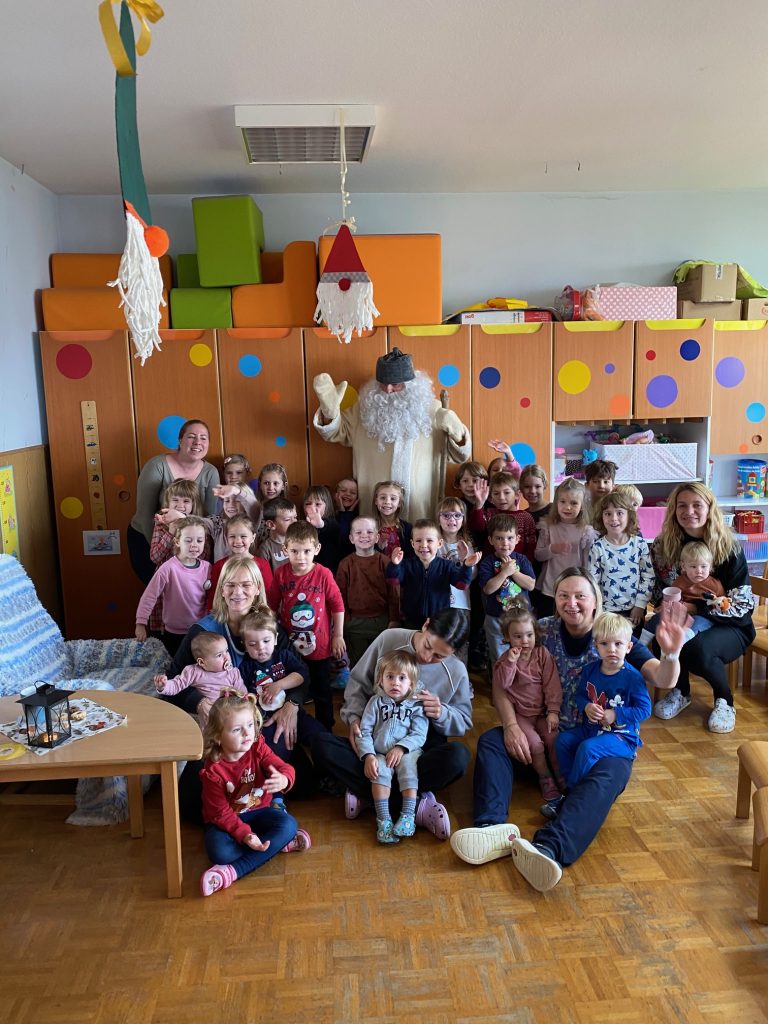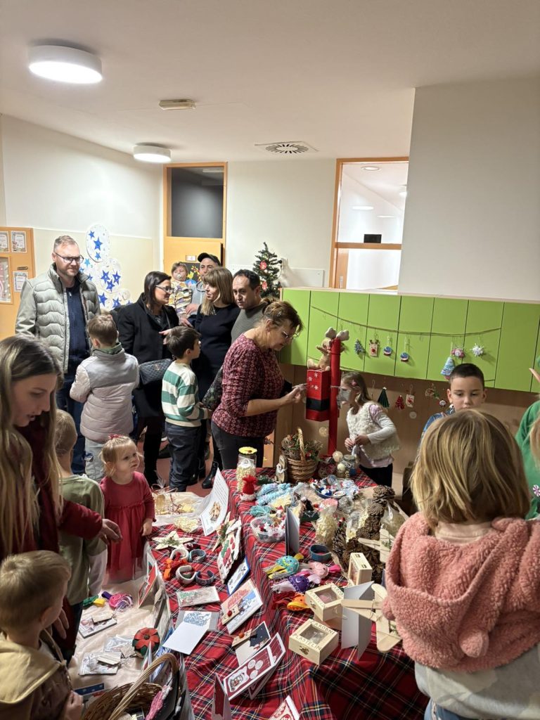V nadaljevanju smo v enoto in na novoletni bazar povabili starše, nonote, bratce, sestrice, tete, strice in tudi kakšnega pravljičnega škrata. V prijetnem druženju smo skupaj ustvarjali novoletne okraske za naše igralnice in hodnike. Ob koncu smo se pogreli s toplim čajem ter si na bazarju lahko izbrali čudovite izdelke, voščilnice, piškote ali celo kokice. Presenečenj pa še ni bilo konec, največje veselje je prinesel obisk dedka Mraza, ki je igralnice in hodnike napolnil z otroškim smehom in toplino.