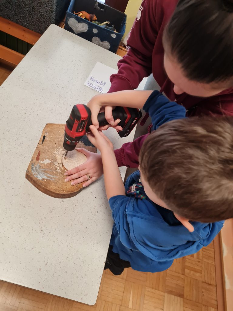 V enoti Prisoje smo december pričeli v ustvarjalnem in prazničnem vzdušju. Skupaj s študentkami Pedagoške fakultete UPM so otroci z veseljem izdelovali lesene obeske za smrečico ter pri tem razvijali svojo domišljijo in ustvarjalnost.