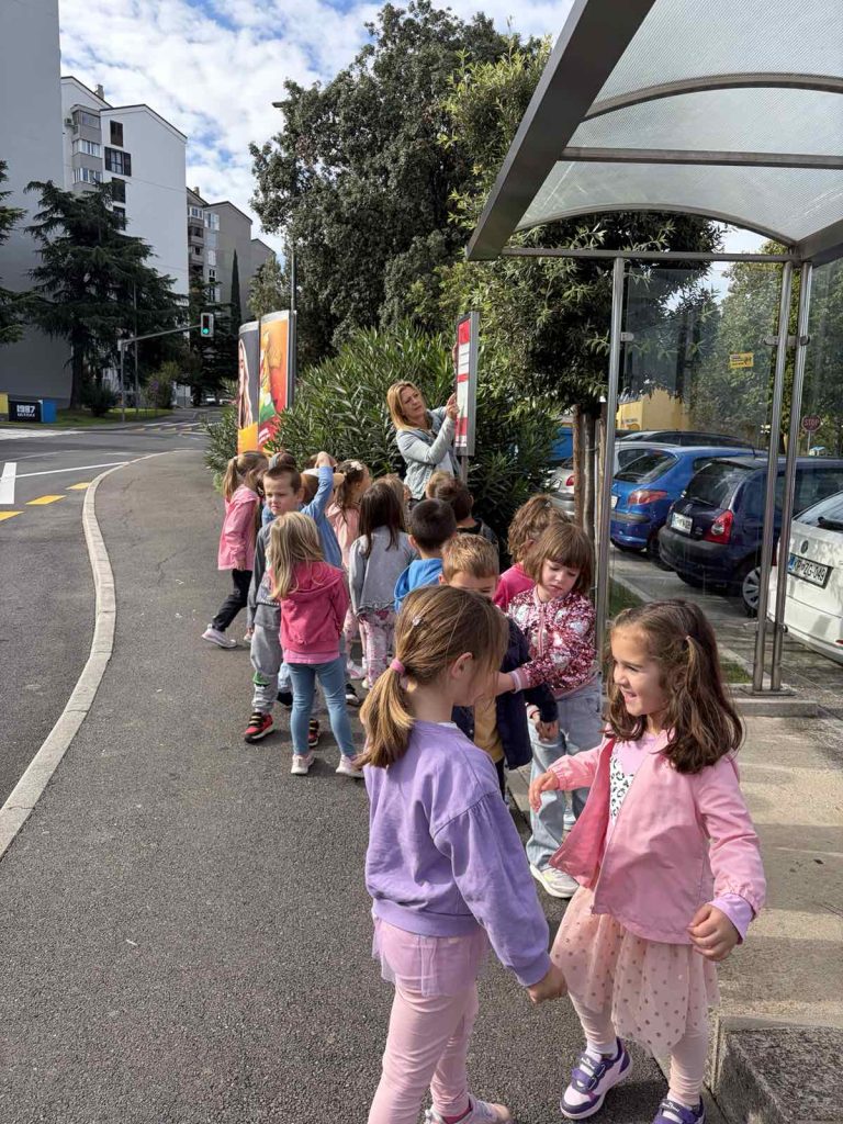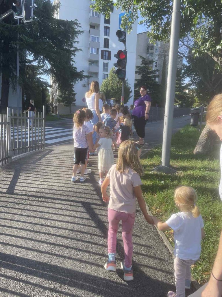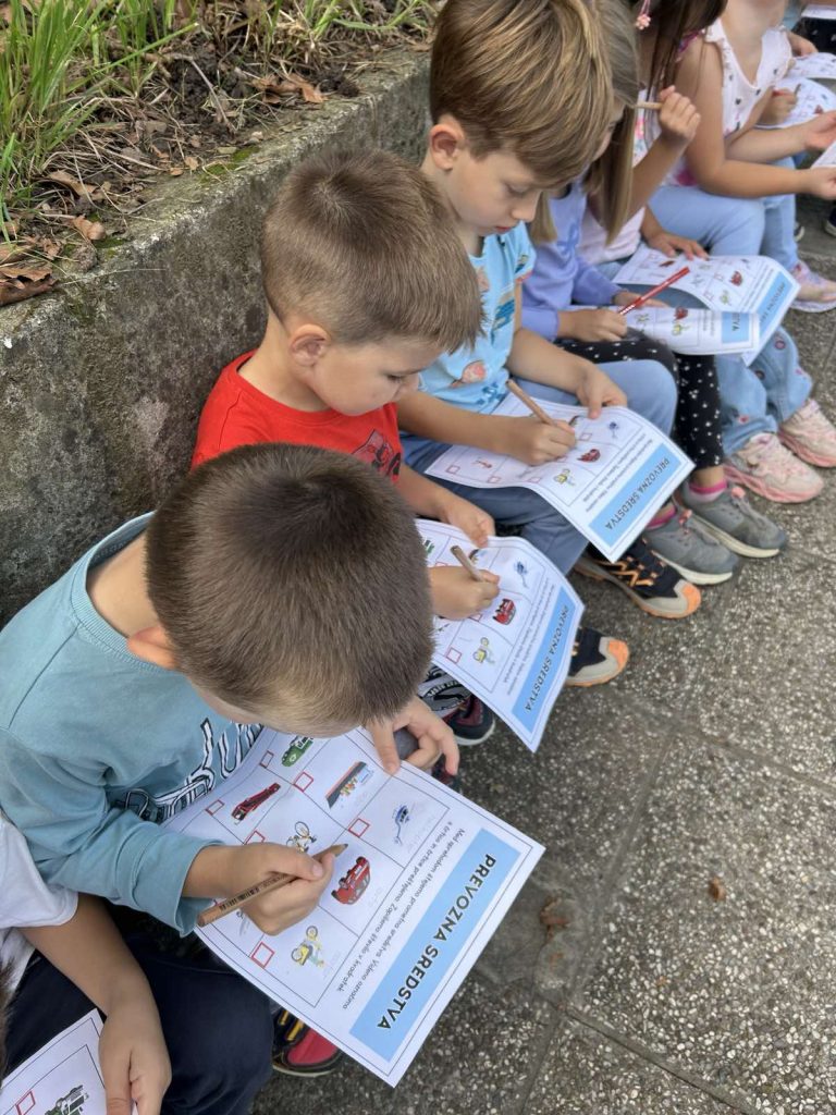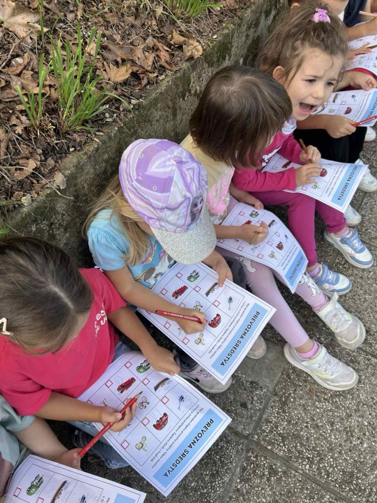 Naši radovedneži so pomagali šteti promet kar s preglednico in ugotovili koliko avtomobilov se vozi naokrog! Sklenili smo, da bi bilo za naravo in naše zdravje bolje, če bi kdaj pa kdaj šli peš ali s kolesom. Zato smo tudi mlajšim otrokom poskušali biti vzoren zgled na sprehodu .